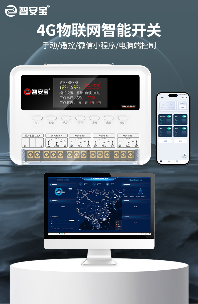 ZK-A10Q是一款四路智能遥控开关,手机小程序远程遥控不限距离,有四大定时模式,场景设置,电脑端可视化大屏显示。